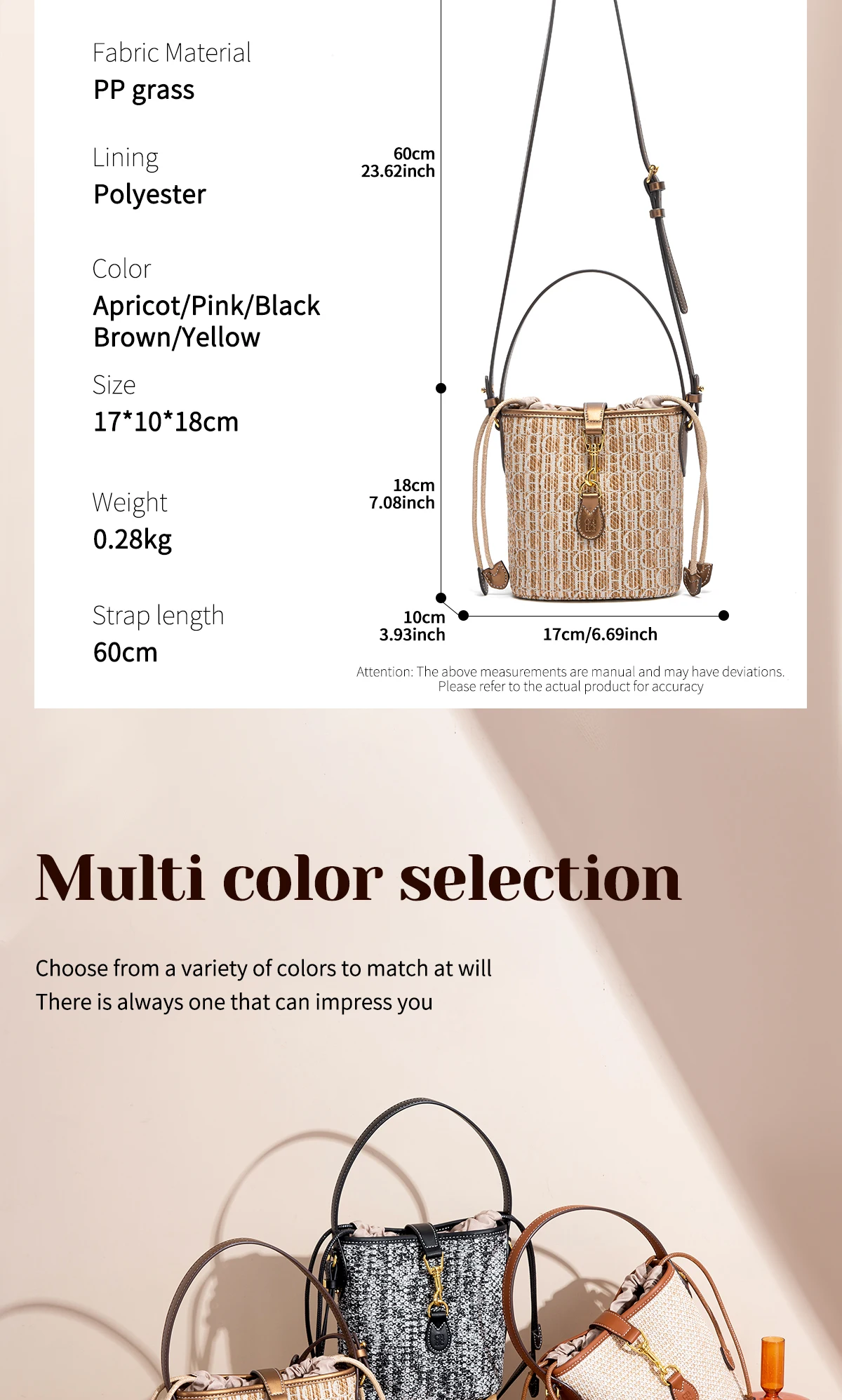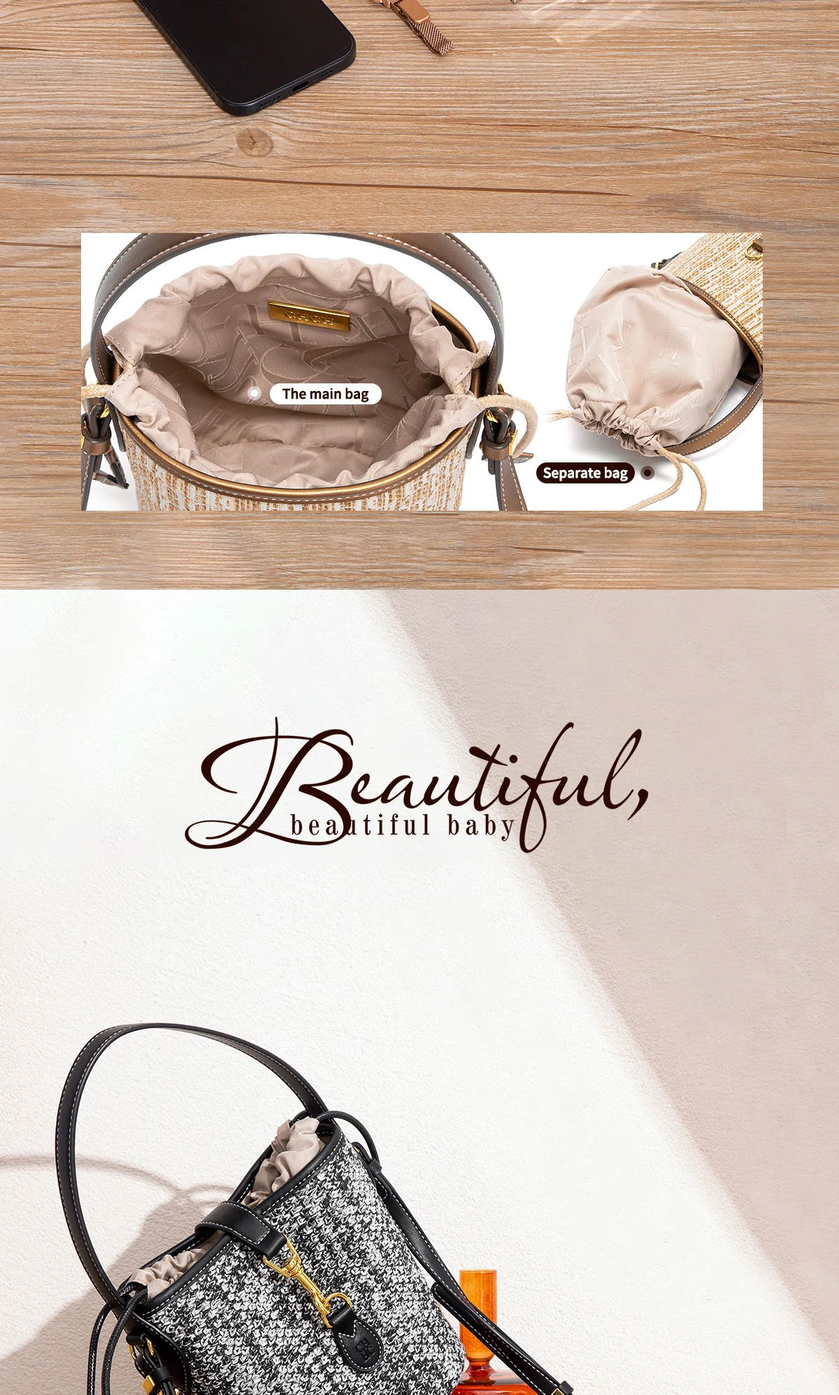 - Types of bags: Handbags & Crossbody bags
